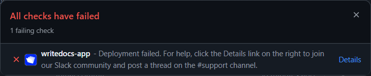 Failed/Error: Something went wrong. If you need assistance contact our support at support@writedocs.io by clicking the Details link at the right side.